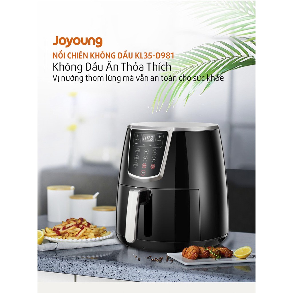 - Nồi Chiên Không Dầu Joyoung KL35-D981 là sản phẩm đến từ thương hiệu toàn cầu Joyoung của Singapore, nổi tiếng với các sản phẩm điện gia dụng, KL35-D981 có thiết kế sang trọng với các phím bấm điện tử cao cấp, hiện đại.