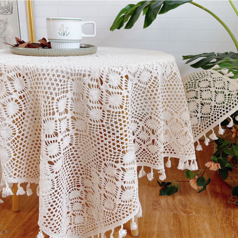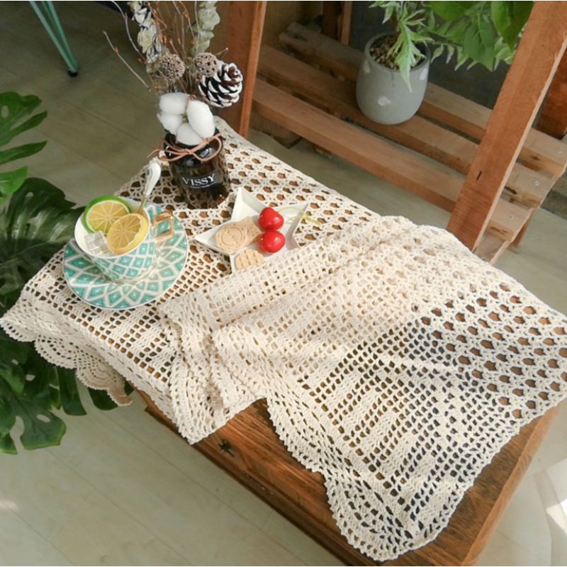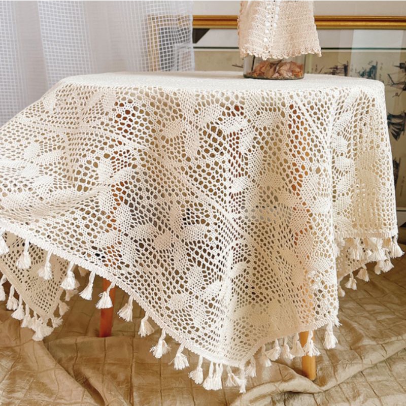 Nhà cửa & Đời sống > Trang trí nhà cửa > Khăn trải bàn || K03/Khăn trải bàn ren móc retro tua rua trang trí bàn trà decor nhà cửa vintage phong cách Âu lenhome sợi thủ côngCòn hàng
