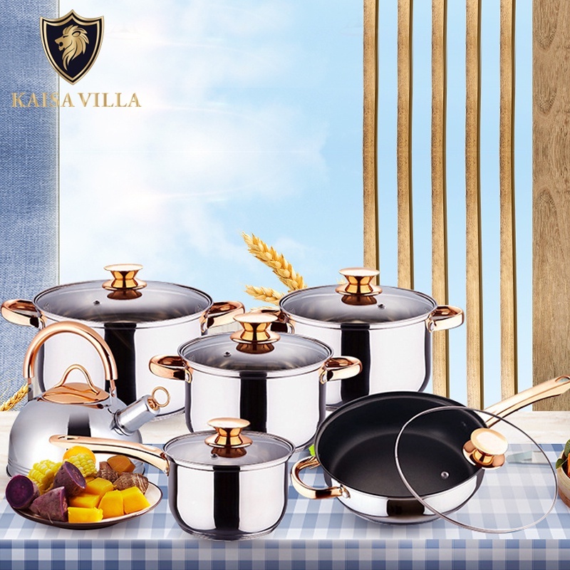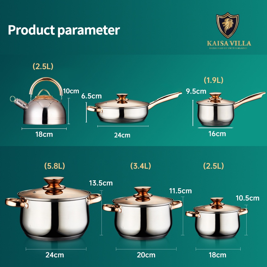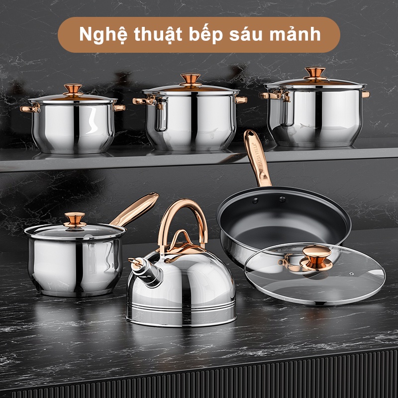 Kaisa Villa bộ nồi inox Đức Bộ nồi 6 món chảo chiên cao cấp inox Nồi súp Chảo sữa ấm đun nước dùng bộ nồi bếp từ KV1004