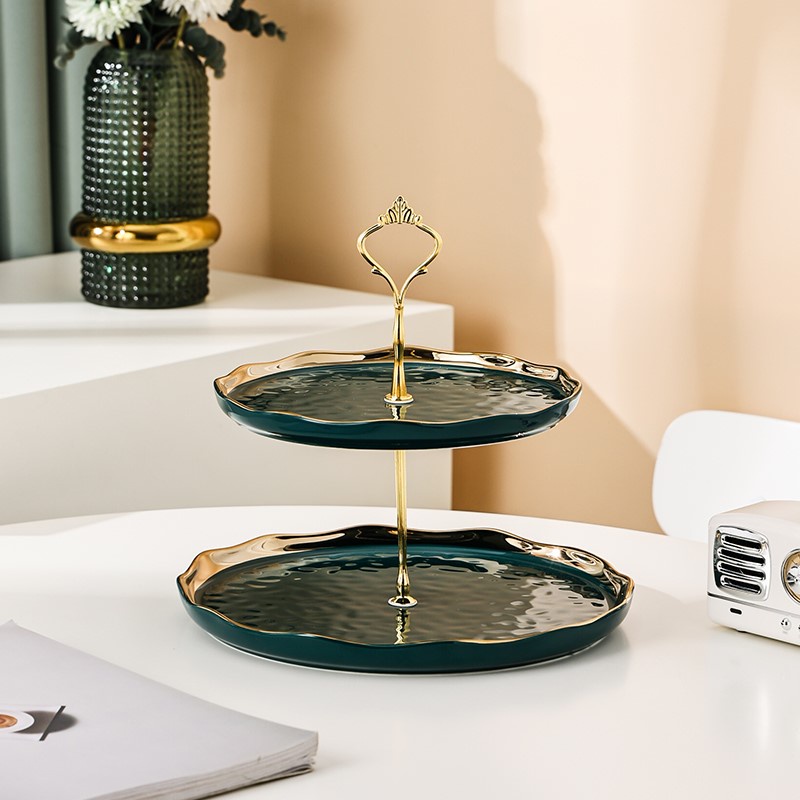 Nhà cửa & Đời sống > Bộ đồ bàn ăn > Dĩa || Kệ 2 - 3 tầng để bánh kẹo, hoa quả xanh ngọc bích | Khay tầng sứ viền vàng cao cấp | KHAY TẦNG SỨ TRỤC MẠ VÀNGCòn hàng
