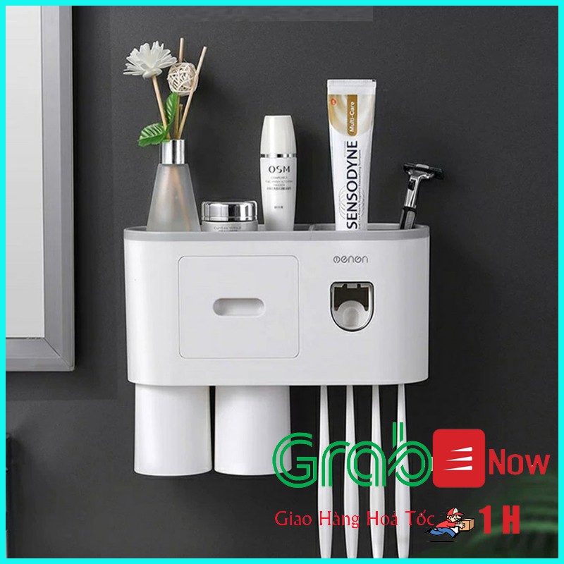 Kệ 2 Cốc Từ Tính Kèm Bộ Nhả Kem Đánh Răng Hiệu OENON, Kệ Dán Tường Không Cần Khoan