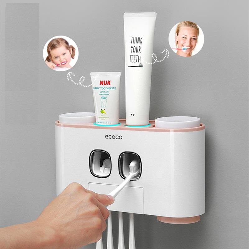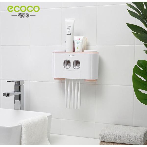 Nhà cửa & Đời sống > Đồ dùng phòng tắm > Kệ đựng bàn chải, kệ nhả kem đánh răng || Kệ 2 nặn kem đánh răng kèm 4 cốc siêu dính Ecoco, hàng cao cấp mã 1802Còn hàng