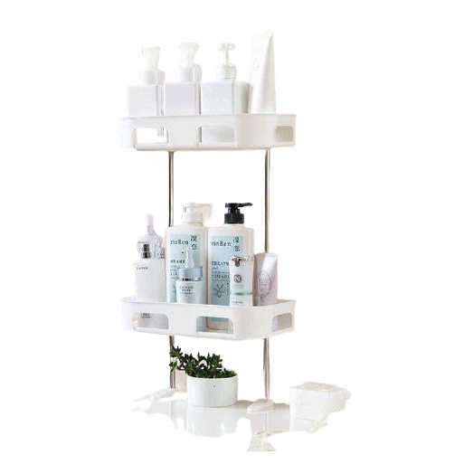 Diện tích nhà tắm nhà bạn hẹp, chắc hẵn bạn sẽ nghĩ sẽ tận dụng phần không gian phía trên toilet để đựng đồ đạc? Thực tế, phần không gian phía trên bồn chứa nước của toilet khá lớn và bạn hoàn toàn có thể đặt lên đó một chiếc treo như hình để lưu trữ đồ đạc trong phòng tắm. Kệ để đồ 2 tầng hít chân không để trên bồn cầu này sẽ là nơi đựng các vật dụng như dầu gội, sữa tắm và các đồ dùng vệ sinh cá nhân vừa thuận tiện vừa sạch sẽ.– Ưu điểm nổi bật của để đồ này là tận dụng tối đa không gian ở phía trên bồn cầu nên phù hợp với các nhà tắm có không gian nhỏ hẹp