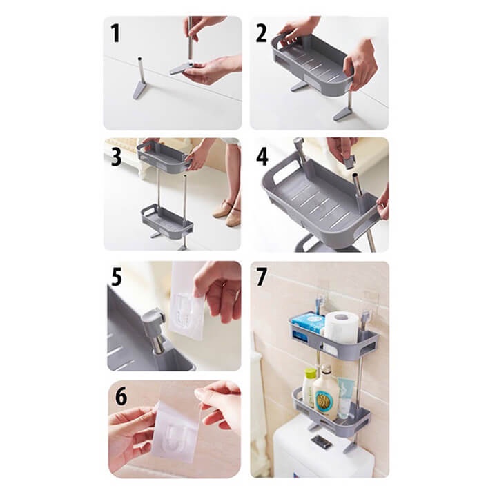 - Cùng với chất liệu nhựa cao cấp và thép không gỉ; kệ nhà tắm 2 tầng thiết kế thuận tiện cho việc lắp ráp dễ dàng mà vẫn chắc chắn và chịu lực tốt