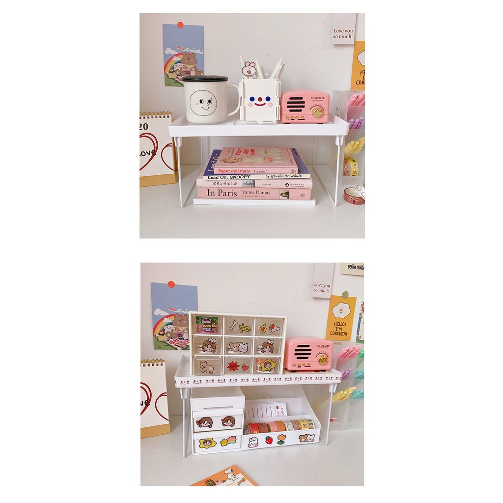 Kệ 2 tầng trang trí , kệ decor bàn học bằng nhựa màu trắng xếp đồ dùng cá nhân tháo rời tiện lợiSẢN PHẨM BAO GỒM: