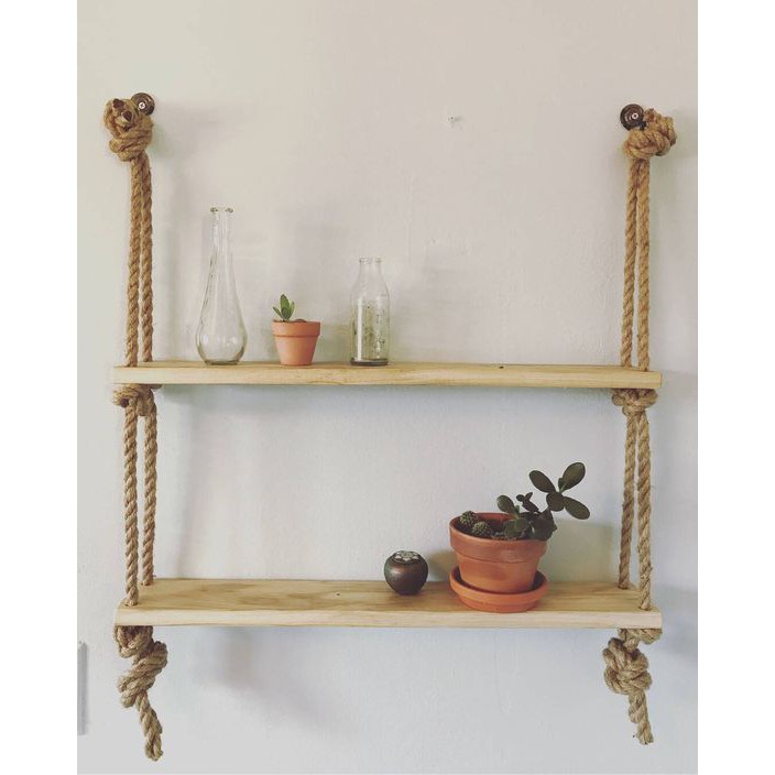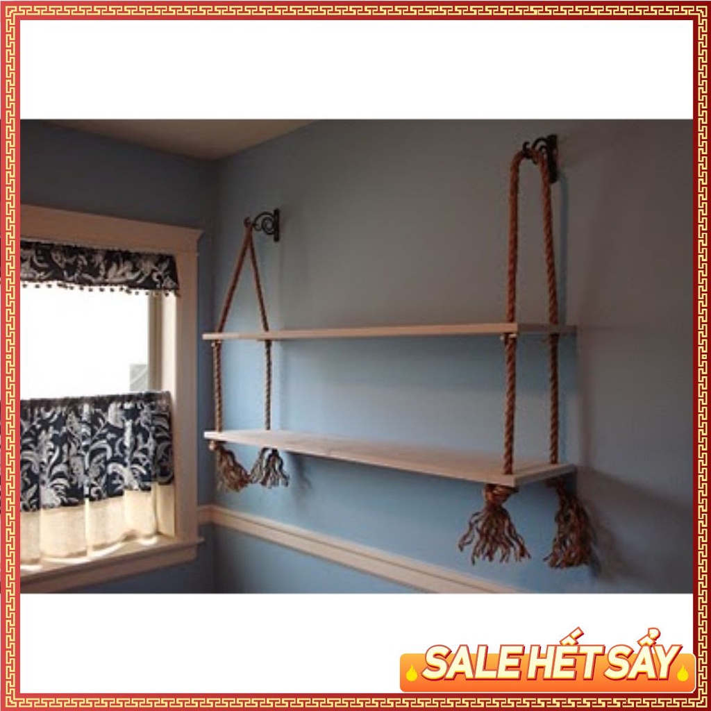 🍇Kệ 2 Tầng Treo Tường Bằng Dây Trang Trí Gỗ Cao Su Ghép🍍Đặc điểm sản phẩm: