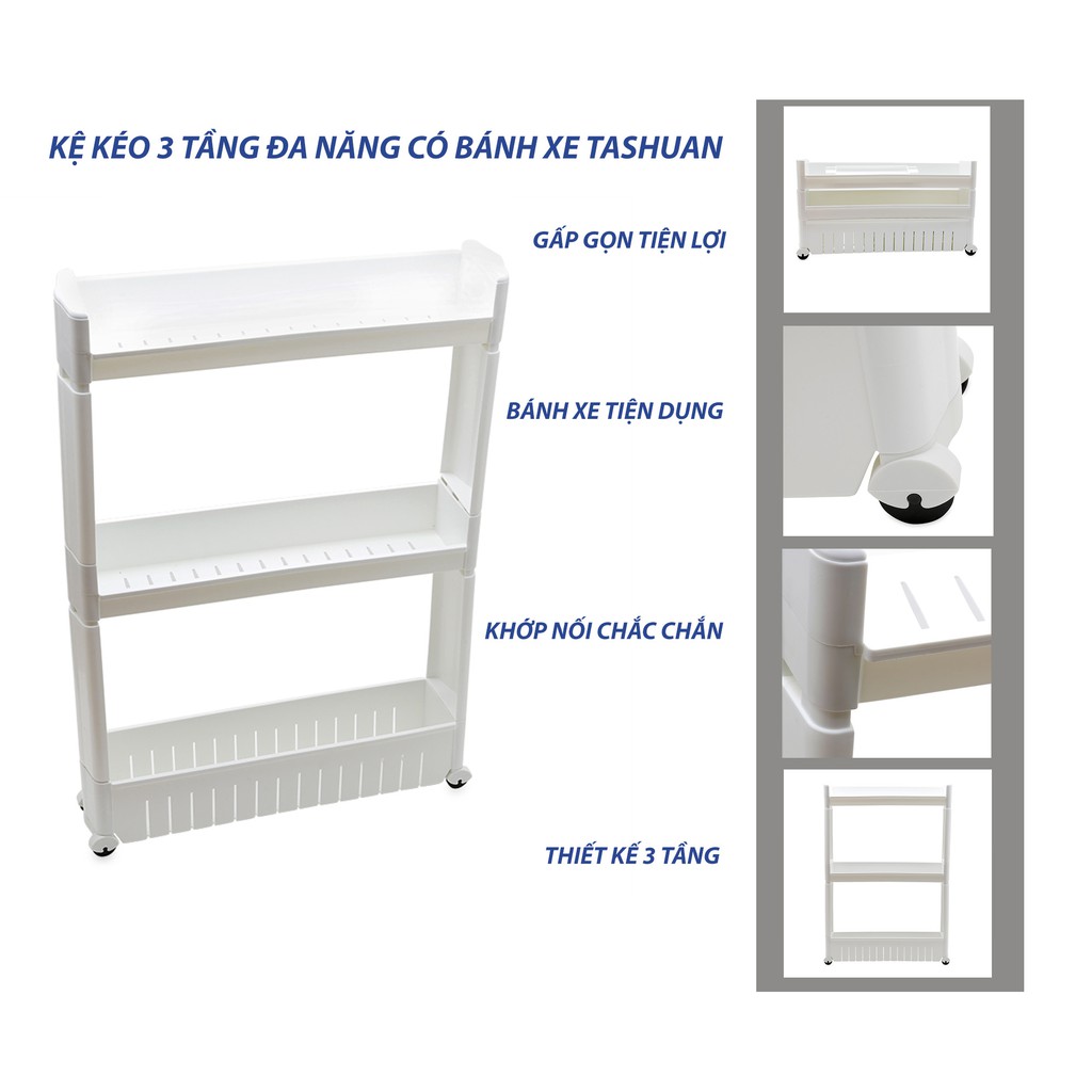 Giới thiệu Kệ 3 Tầng Có Bánh Xe Kéo Đẩy Đa Năng Nhựa Tashuan Hàng Việt Nam Xuất Khẩu