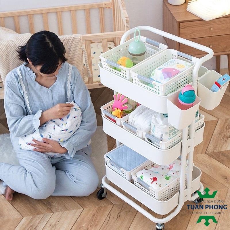 Kệ 3 Tầng Đi Động,Kệ Bỉm Sữa,Kệ Spa Có Tay Cầm Và Bánh Xe.Giá Đựng Đồ Phòng Bếp,Phòng Khách Đa Năng