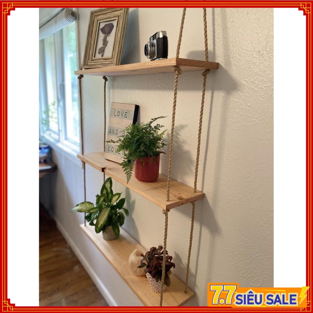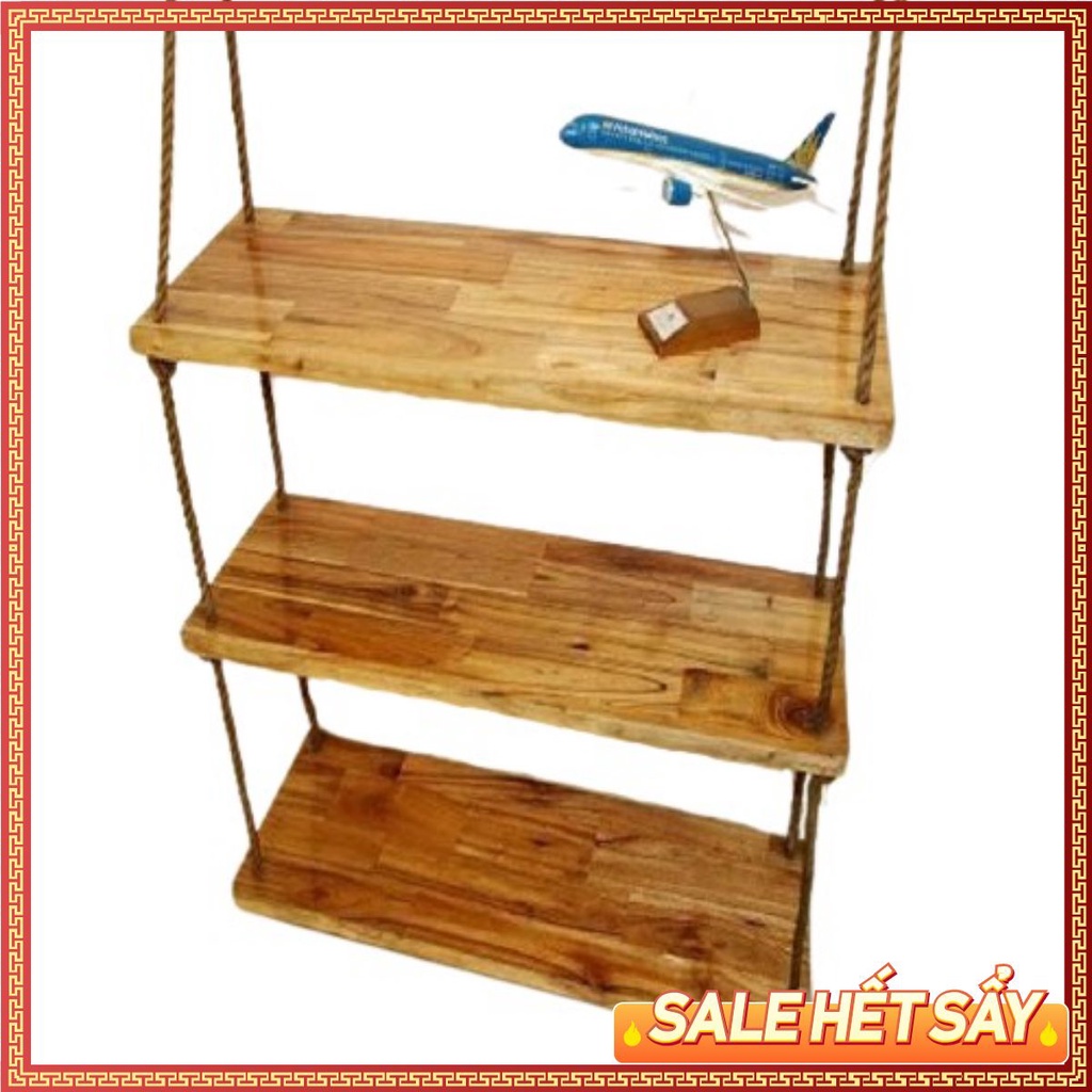 Kệ 3 Tầng Treo Tường 60x20cmGIÁ RẺ-CHẤT LƯỢNG Bằng Dây Thừng Gỗ Cao Su Ghép. Kích Thước: 60x20cm