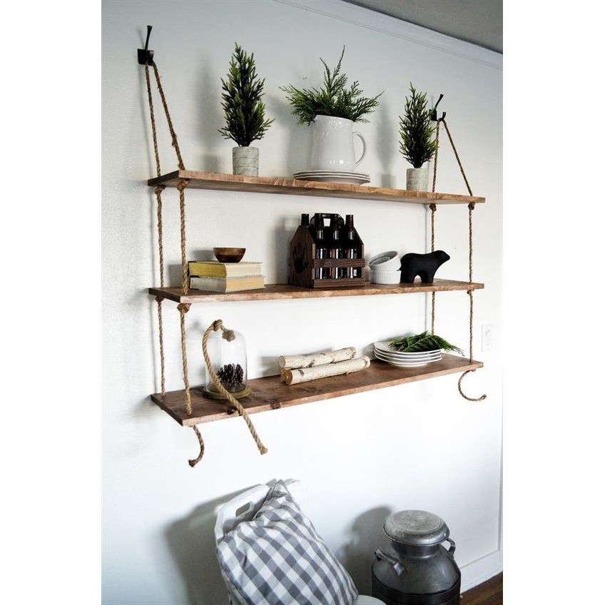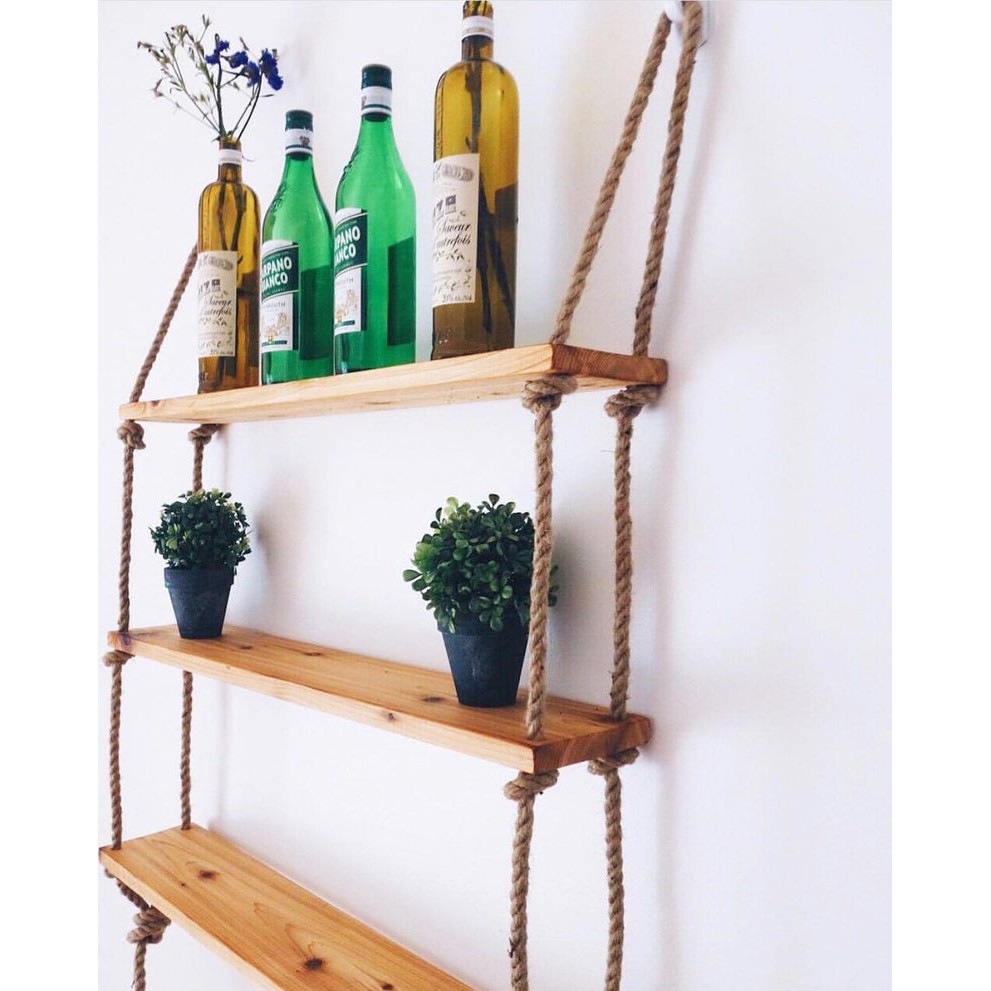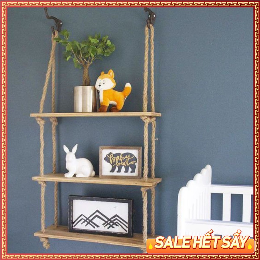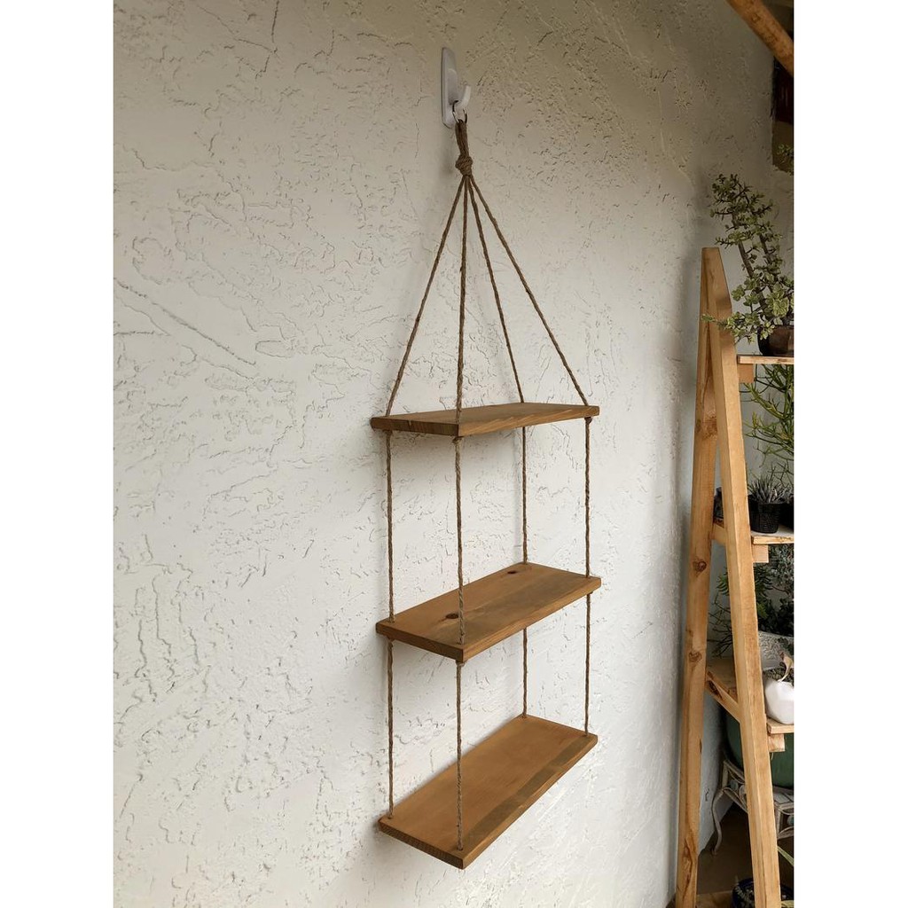 Nhà cửa & Đời sống > Nội thất > Kệ & Giá || Kệ 3 Tầng Treo Tường Trang Trí Bằng Dây Thừng GIÁ TỐT Gỗ Cao Su Ghép, Phụ Kiện Treo Tường Phòng Khách, Văn PhòngCòn hàng