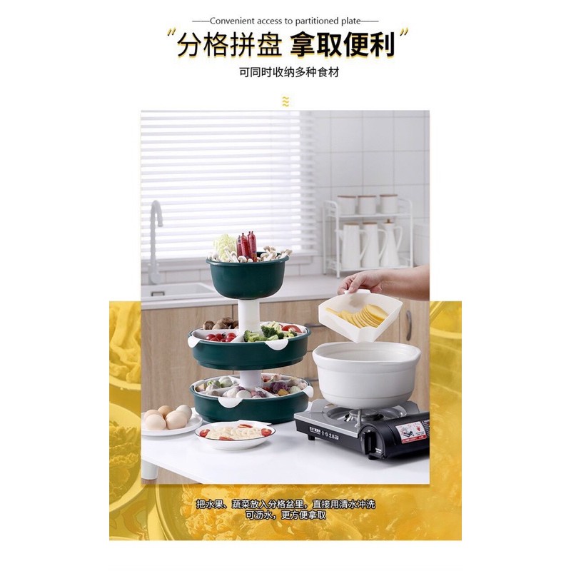 Vừa làm rổ , kệ để thực phẩm , đồ ăn lẩu . Vừa làm khay mức để bánh kẹo , hoa quả thoải mái .