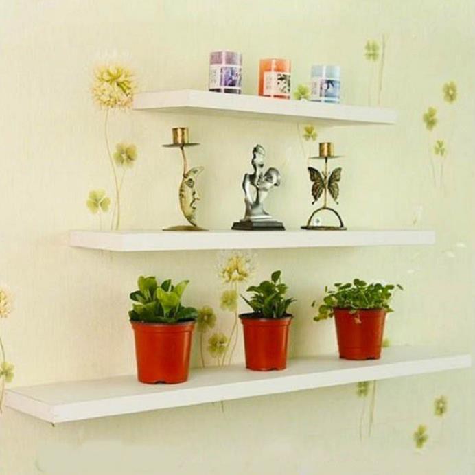 Kệ treo tường 3 thanh ngang trắng dài 50,60,80cm X sâu 15cmKệ treo tường với kiểu dáng đơn giản nhưng vô cùng độc đáo, lạ mắt, dùng để trang trí, tạo điểm nhấn cho không gian nhà của bạn thêm phần xinh xắn.