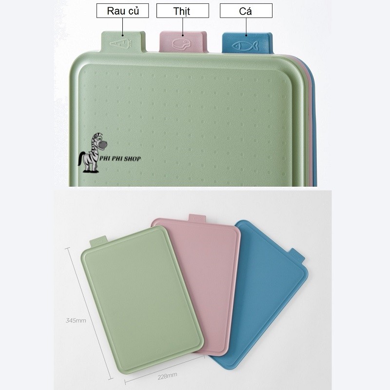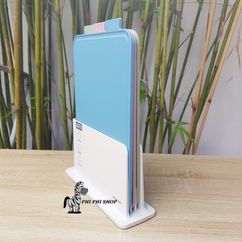 - Bộ gồm : 3 thớt size 34.5cmx22.8cm và 1 giá đựng thớt