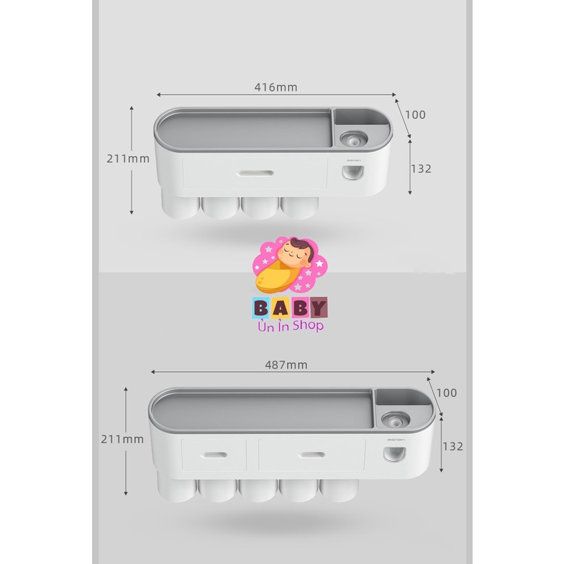 - Sản phẩm gồm: 1 Kệ nhà tắm tích hợp chức năng lấy kem tự động + Cốc hút từ tính + miếng dán tường
