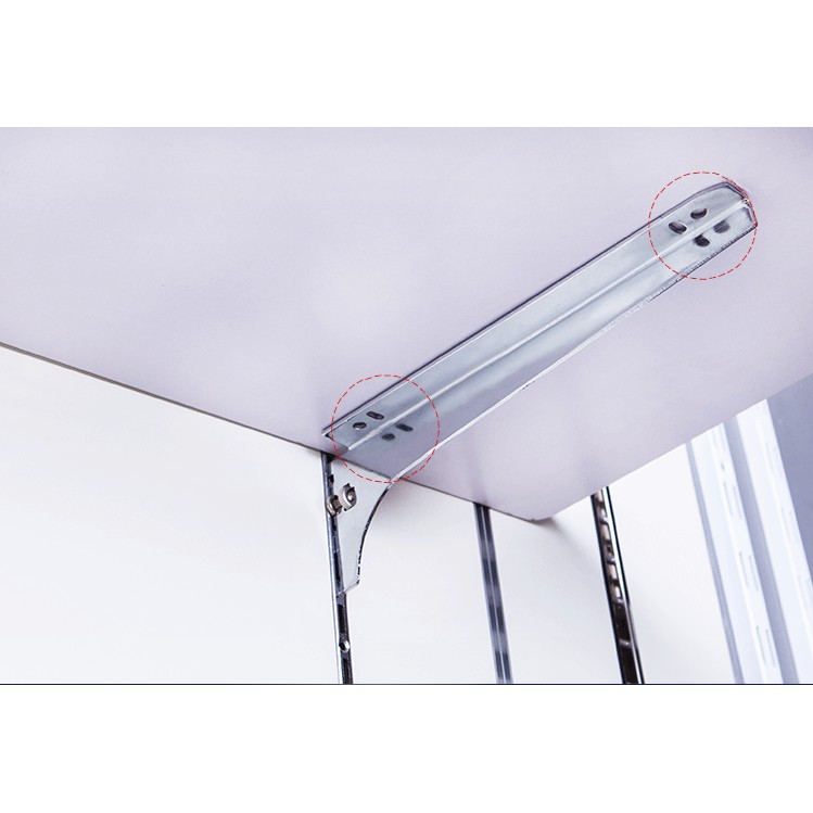 Với 2 thanh ray và 8 tay đỡ bạn được bộ kệ 4 tầng cao 1 mét