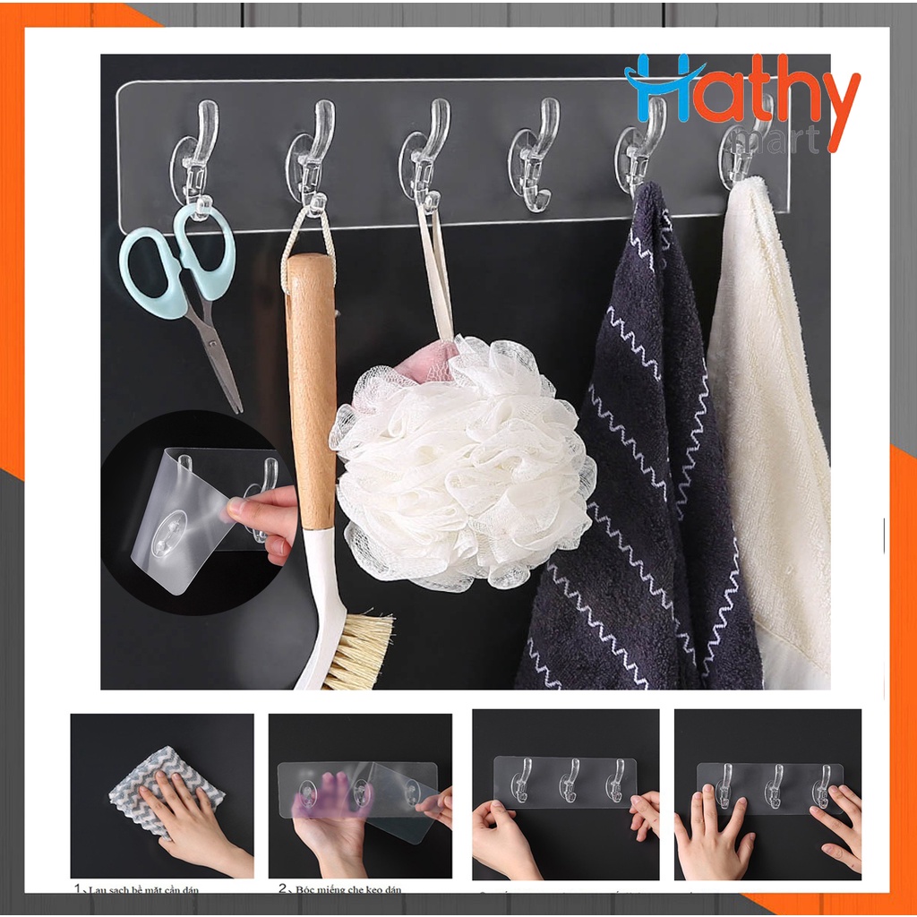 Kệ 6 móc dán tường siêu dính đa năng trong suốt