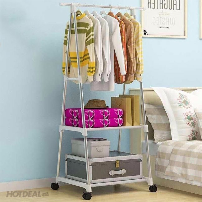 ❸ Khung sắt sơn tĩnh điện chắc chắn, cao rộng treo được nhiều đồ có thêm tầng để đựng vali du lịch, Quần Áo bò…