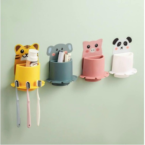 Nhà cửa & Đời sống > Đồ dùng phòng tắm > Kệ đựng bàn chải, kệ nhả kem đánh răng || Kệ bàn chải đánh răng dán tường hình thú dễ thương với 4 khe cắm bàn chải và 1 hộp để kem đánh răng tiện lợiCòn hàng