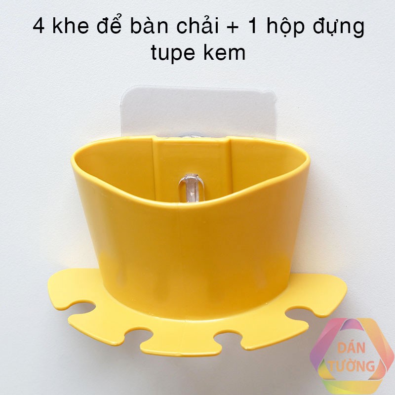 Kệ bàn chải đánh răng dán tường nhà tắm MDT với 4 khe cắm bàn chải và 1 hộp để kem đánh răng tiện lợi _K47