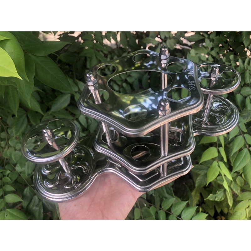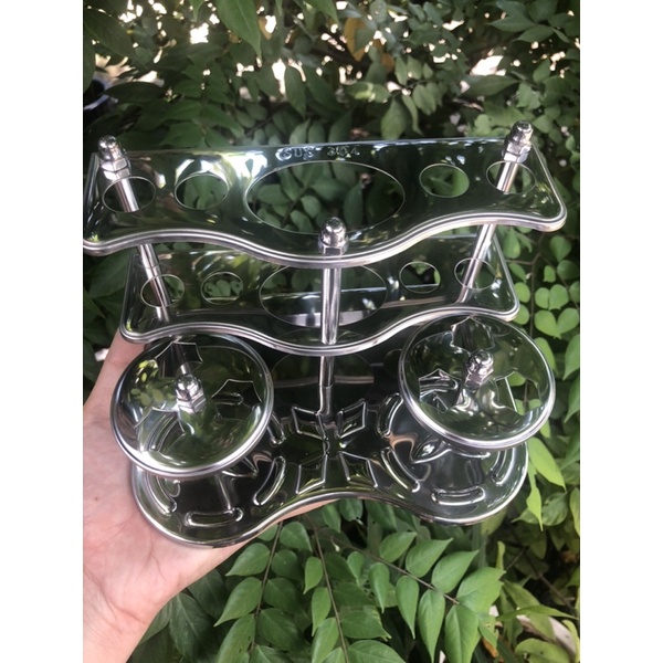 Kệ để được 1 túyp kem đánh răng và 4 bàn chải đánh răng và 02 ly thủy tinh