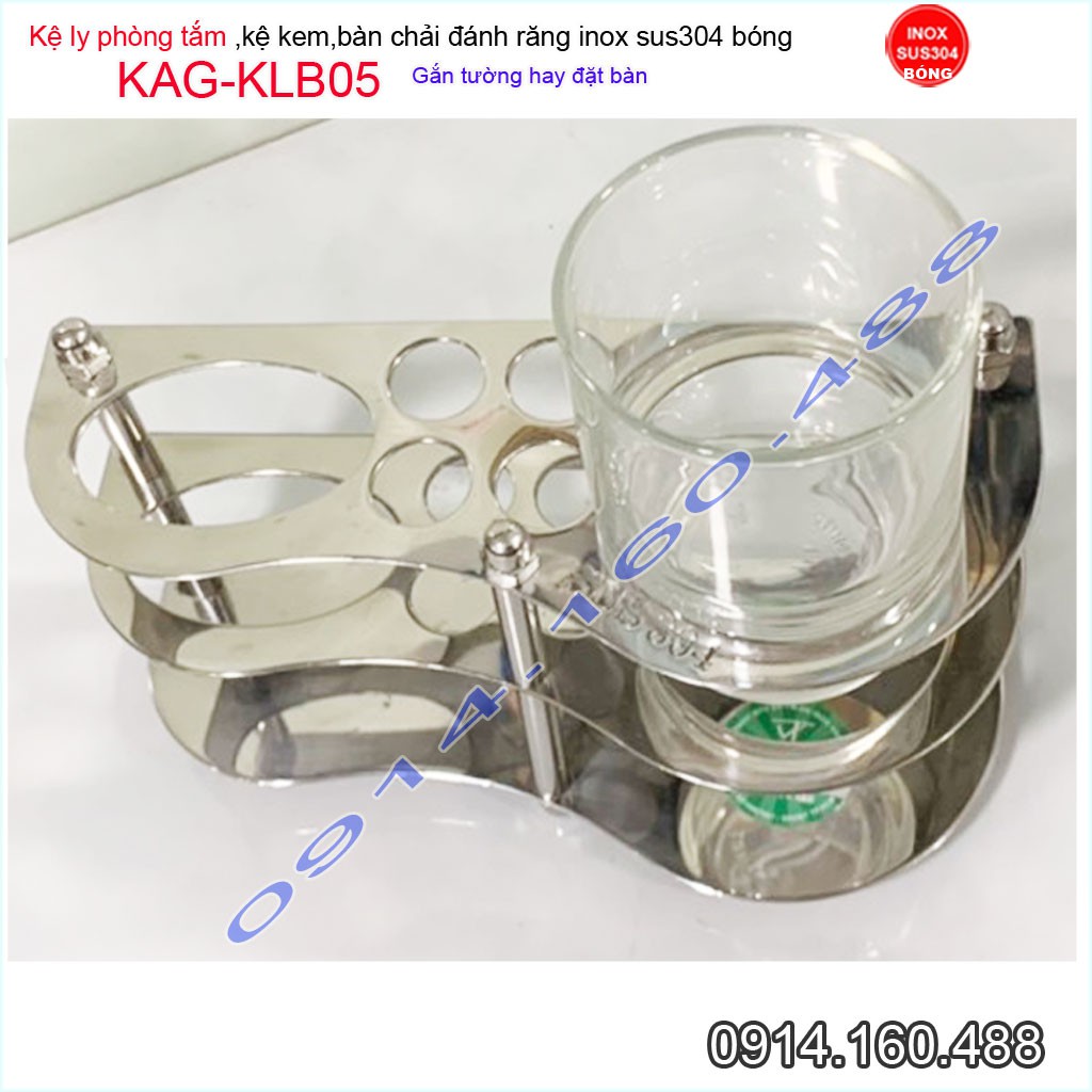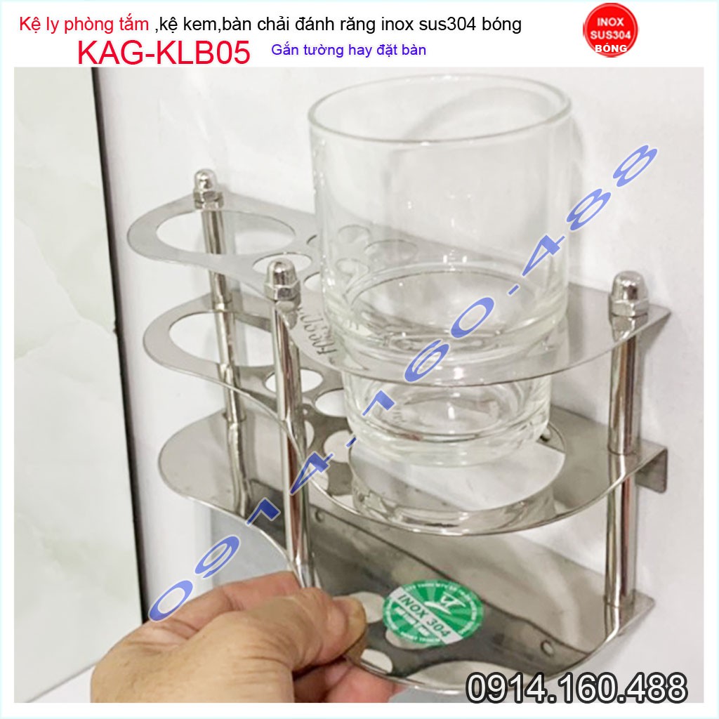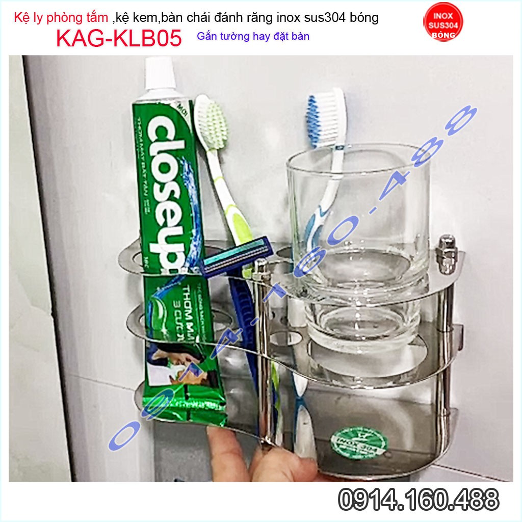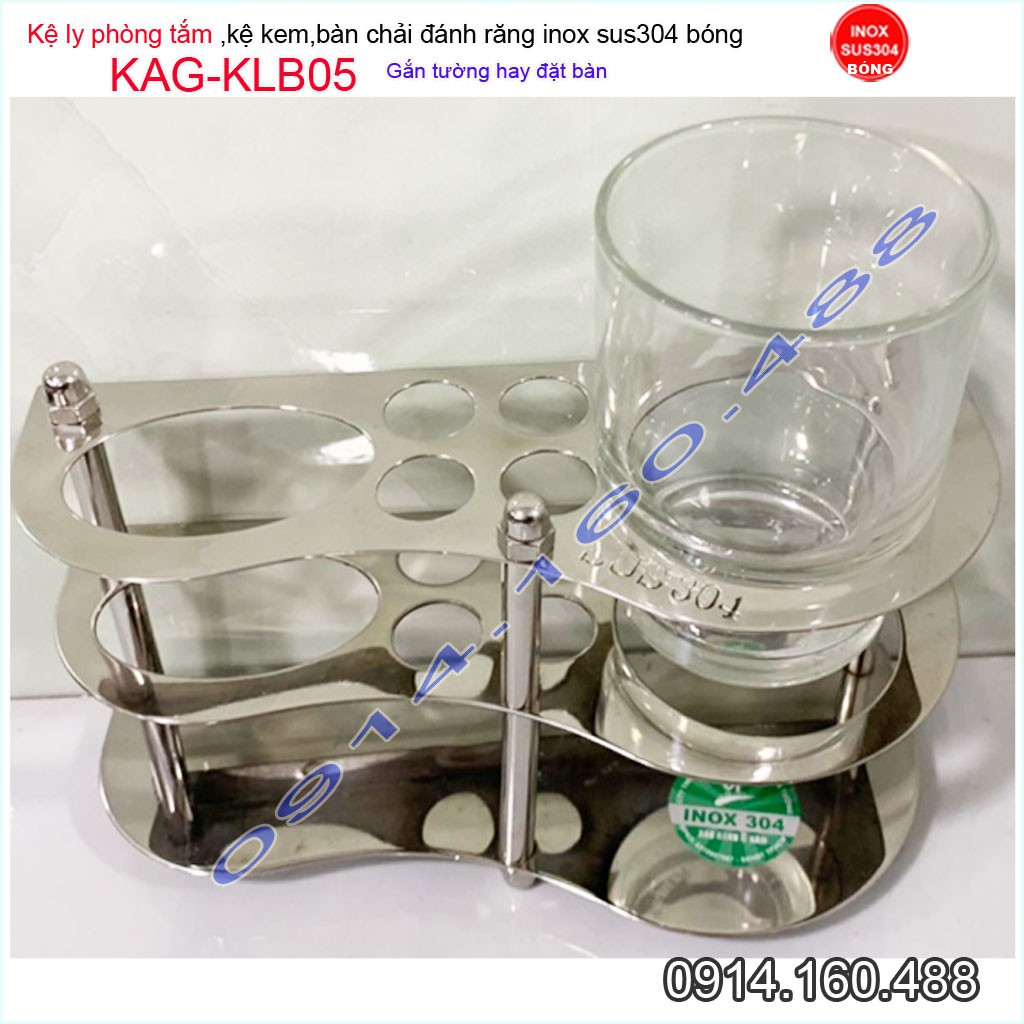 Kệ bàn chải kem đánh răng inox 304 KAG-KLB05+ Ly thủy tinh trọn bộ mẫu mới tiện dụng sử dụng tốt