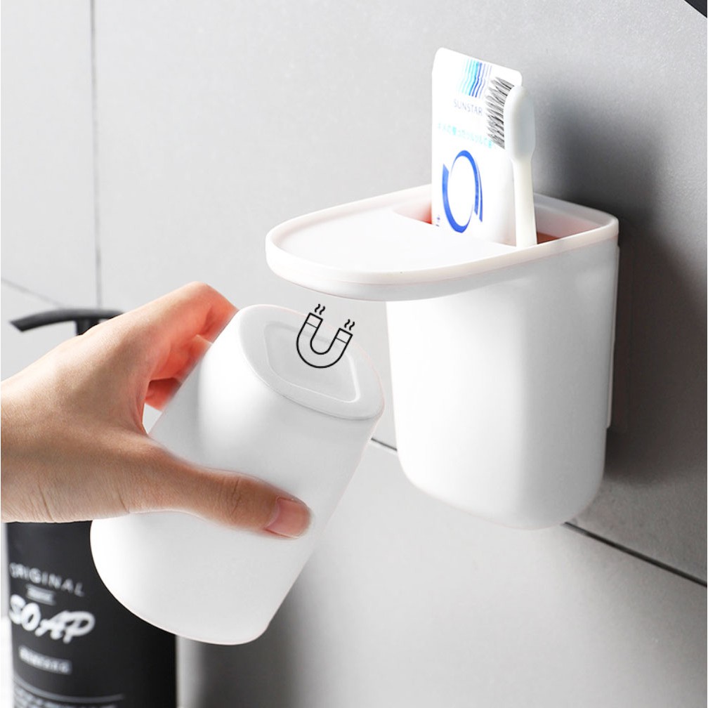 Kệ bàn chải kem đánh răng loại mới có nam châm hút ly (NEW)Chất liệu: nhựa PP, an toàn môi trường