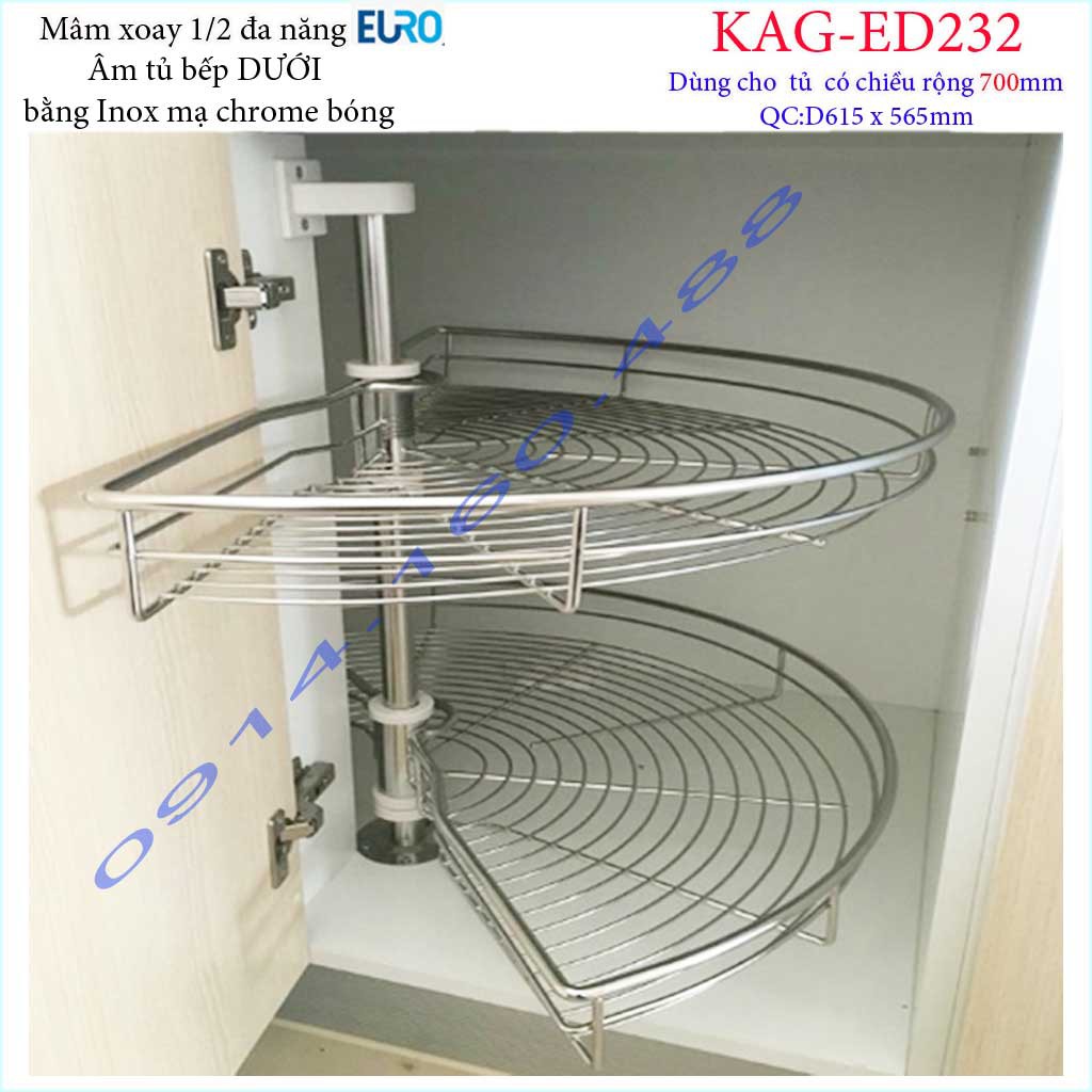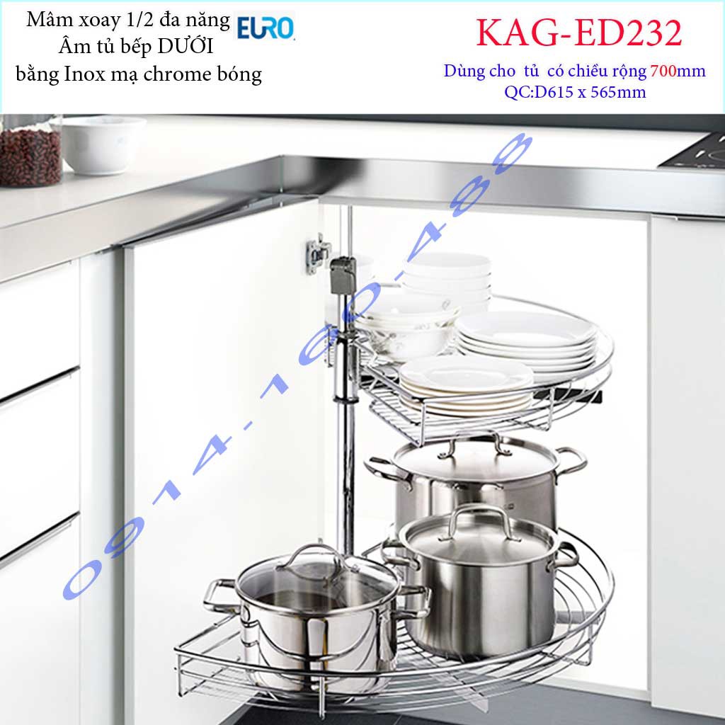 Kệ bán nguyệt Euro KAG-ED232- 2 tầng, mâm xoay inox 1.2, kệ góc tủ bếp dưới inox tròn thiết kế đẹp tiết kiệm không gian