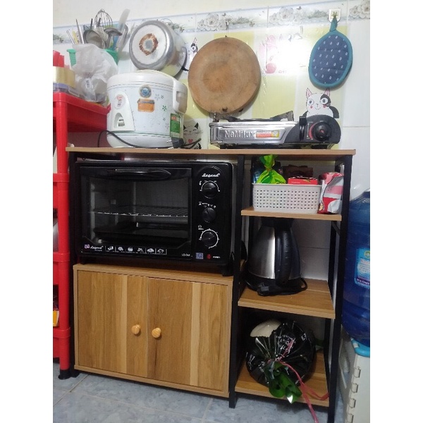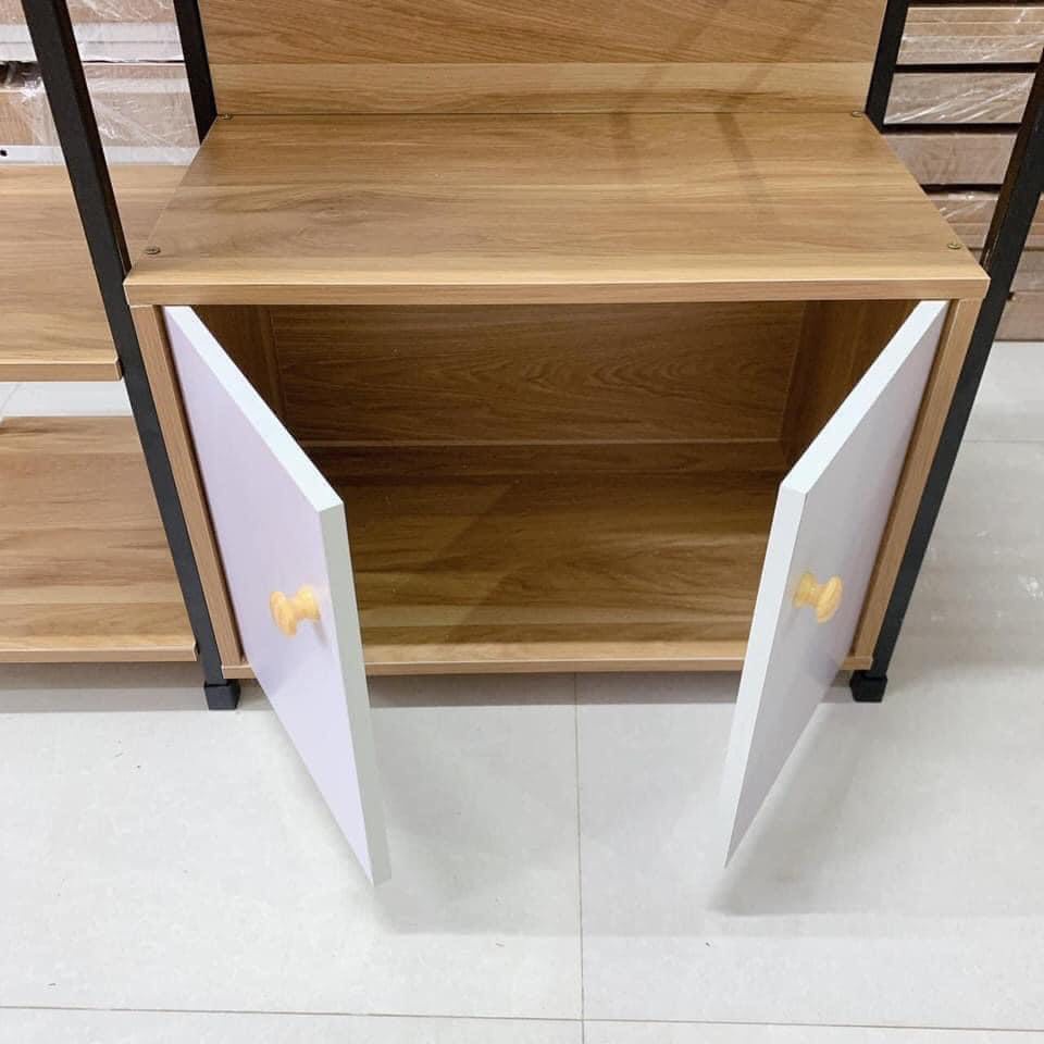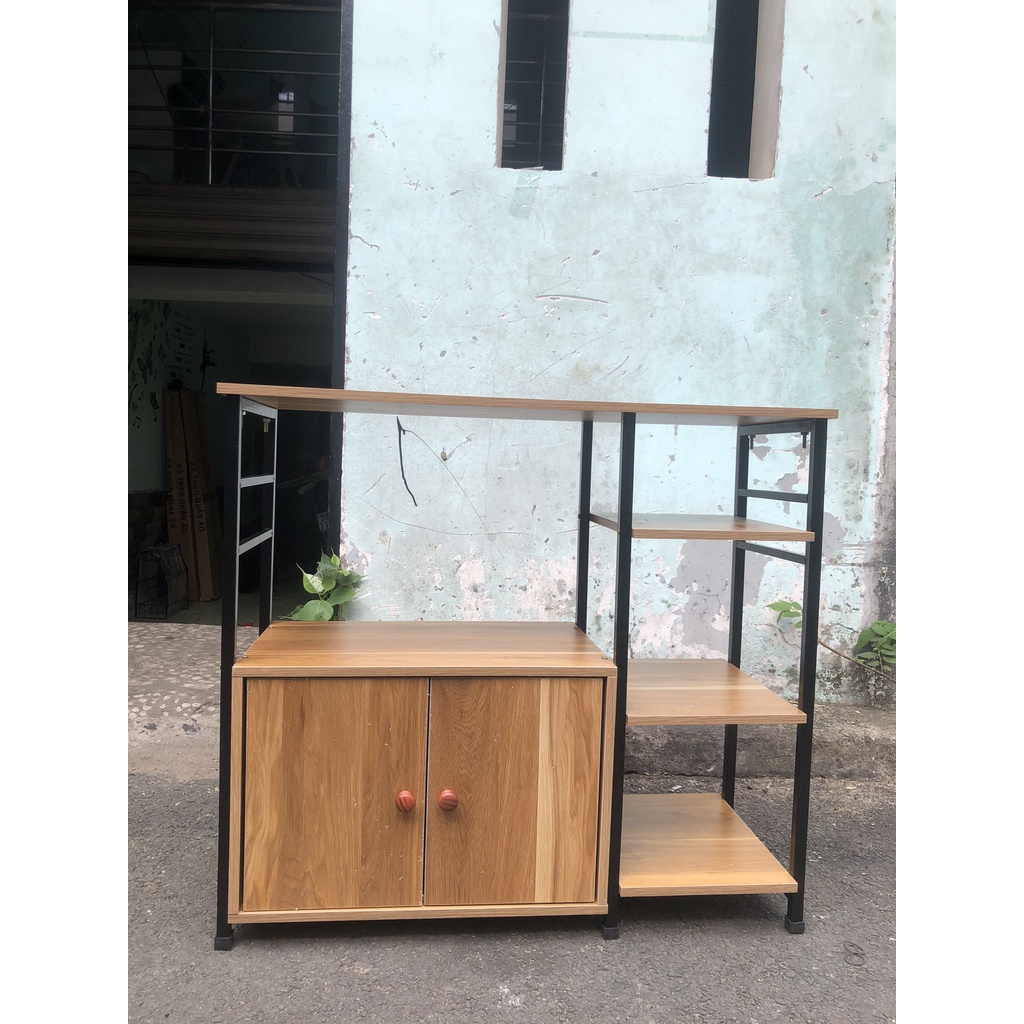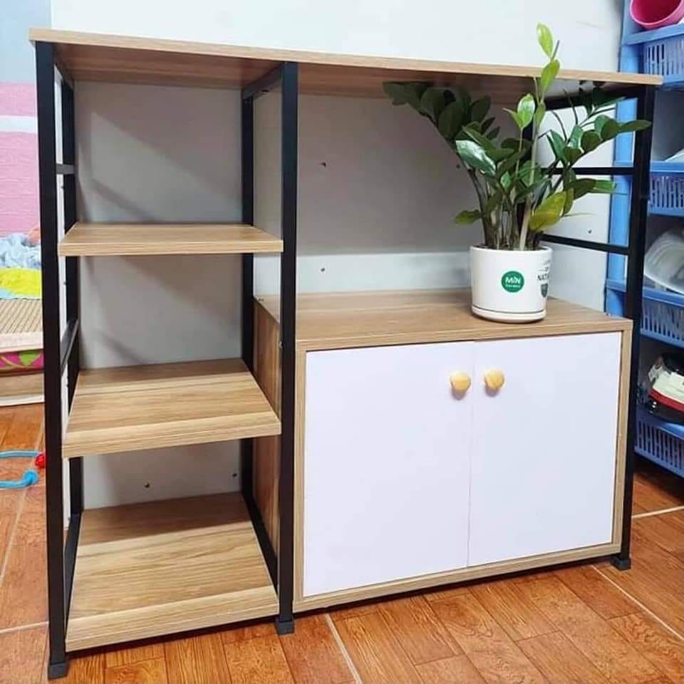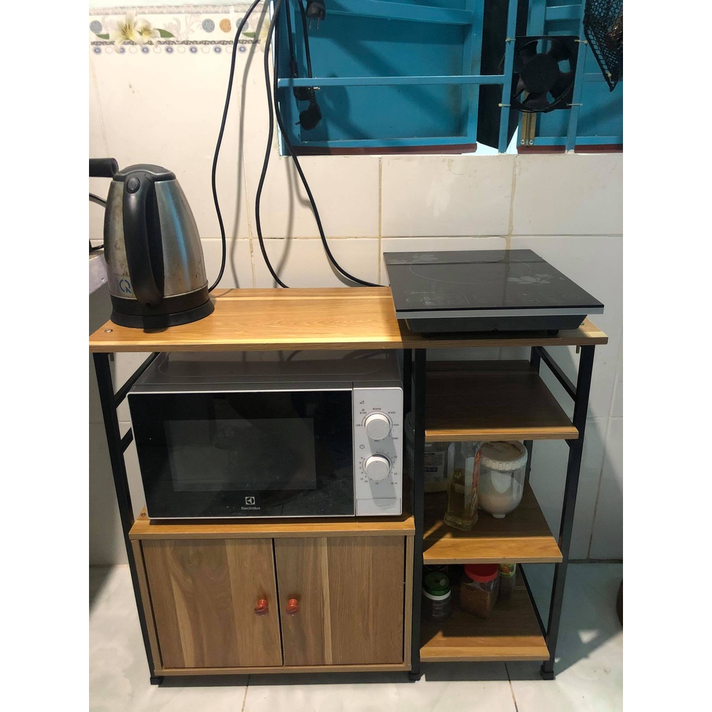 ⚡Kệ có 2 tầng và 1 giá 3 tầng, 2 tầng đều có thể dùng để lò vi sóng và 1 ngăn tủ để đồ..., 3 giá còn lại là giá sắt và gỗ chắc chắn có thể để bát đĩa, nồi xoong chảo, đồ dùng nhà bếp, lọ gia vị, bình nước, các đồ dùng gia dụng khác …