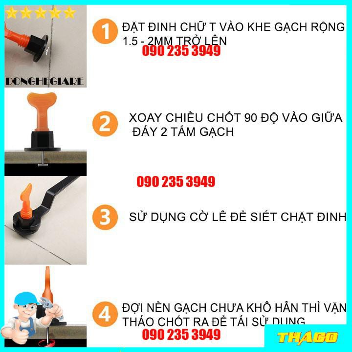 Số lượng: 100 vít lát phẳng gạch và 1 cờ lê móc