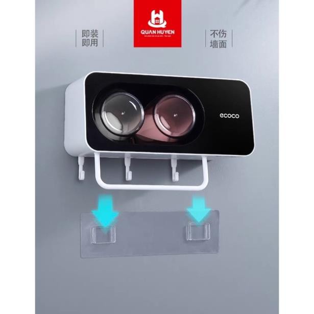 Kệ cắm bàn chải 2 cốc để đồ treo khăn Ecoco không cần khoan tường cao cấp mẫu mới 2021