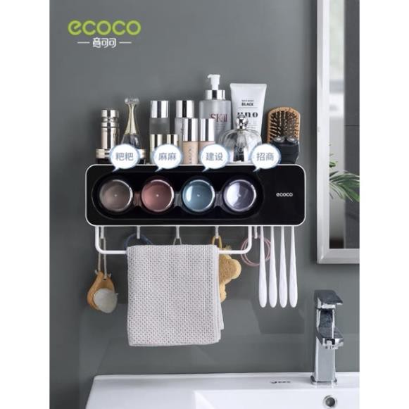 Kệ cắm bàn chải 4 cốc để đồ treo khăn Ecoco không cần khoan tường cao cấp mẫu mới 2021