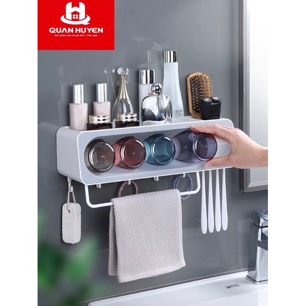 Kệ cắm bàn chải 4 cốc để đồ treo khăn Ecoco không cần khoan tường cao cấp mẫu mới 2021