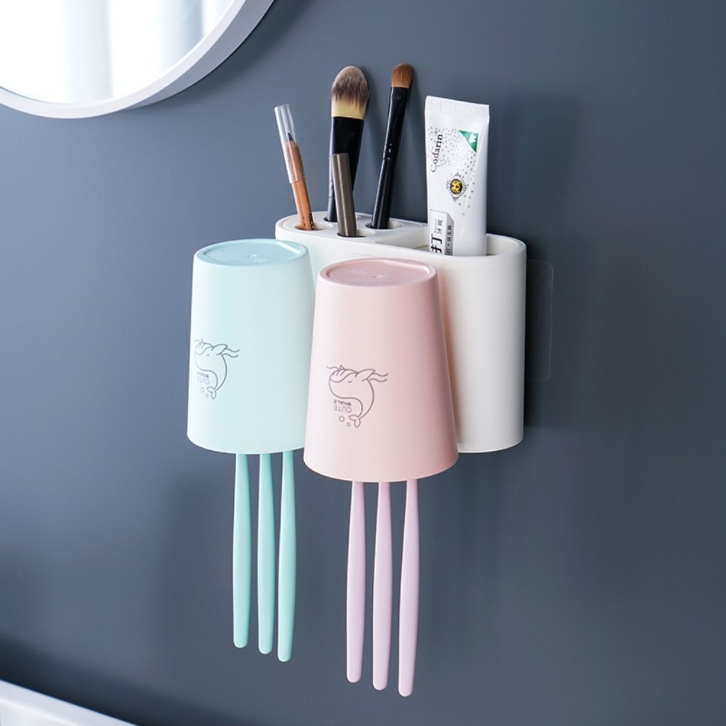 Nhà cửa & Đời sống > Đồ dùng phòng tắm > Kệ đựng bàn chải, kệ nhả kem đánh răng || Kệ cắm bàn chải đánh răng để đồ kèm 2 cốc để nhà tắmCòn hàng