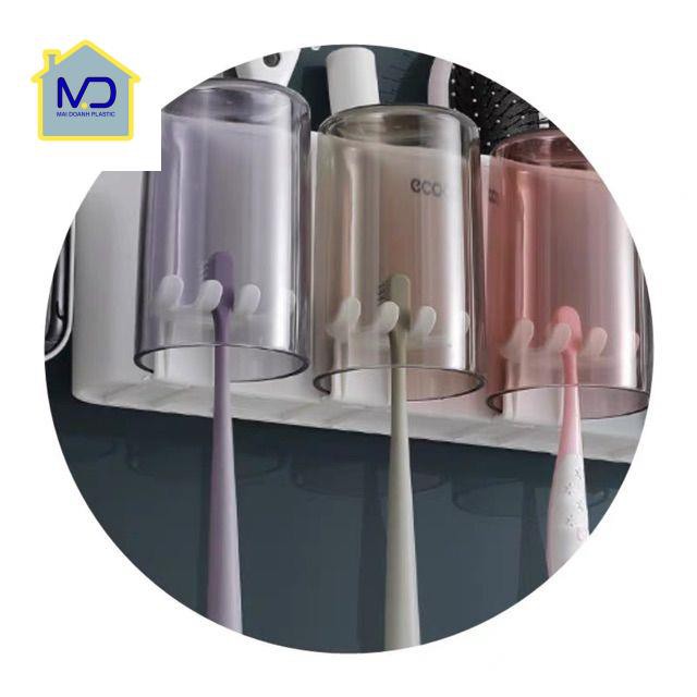 GIỚI THIỆU SP : kệ đựng 2 cốc 3 cốc và 1 nhả kem đánh răng ECOCO Cao cấp. Shop có bán riêng lẻ.Sản phẩm gồm dụng cụ nặn kem đánh răng tự động bên phải của ảnh. Chất liệu PVC bền, đẹp thân thiện với môi trường, an toàn với sức khỏe. - Dễ dàng thay đổi vị trí - Giữ cho bàn chải, cốc, kem đánh răng, sạch sẽ Phần để tuýp kem đánh răng là dạng nặn kem tự động, chỉ cần đưa đầu bàn chải vào nhấn nhấn là kem đánh răng chảy xuống, rất tiện Sử dụng công nghệ hút chân không hiện đại hút siêu dính, không cần khoan vít.