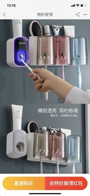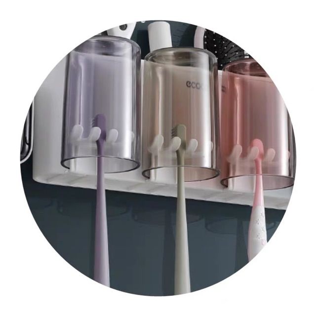 GIỚI THIỆU SP : kệ đựng 2 cốc 3 cốc và 1 nhả kem đánh răng ECOCO Cao cấp. Shop có bán riêng lẻ.Sản phẩm gồm dụng cụ nặn kem đánh răng tự động bên phải của ảnh. Chất liệu PVC bền, đẹp thân thiện với môi trường, an toàn với sức khỏe. - Dễ dàng thay đổi vị trí - Giữ cho bàn chải, cốc, kem đánh răng, sạch sẽ Phần để tuýp kem đánh răng là dạng nặn kem tự động, chỉ cần đưa đầu bàn chải vào nhấn nhấn là kem đánh răng chảy xuống, rất tiện Sử dụng công nghệ hút chân không hiện đại hút siêu dính, không cần khoan vít.