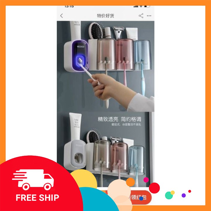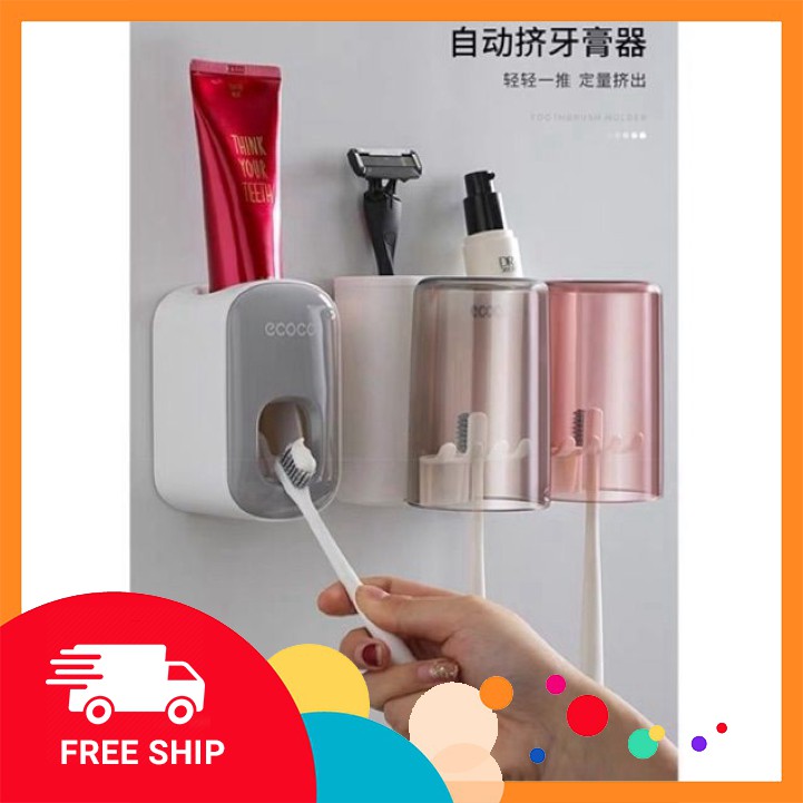 GIỚI THIỆU SP : kệ đựng 2 cốc 3 cốc và 1 nhả kem đánh răng ECOCO Cao cấp. Shop có bán riêng lẻ.Sản phẩm gồm dụng cụ nặn kem đánh răng tự động bên phải của ảnh. Chất liệu PVC bền, đẹp thân thiện với môi trường, an toàn với sức khỏe. - Dễ dàng thay đổi vị trí - Giữ cho bàn chải, cốc, kem đánh răng, sạch sẽ Phần để tuýp kem đánh răng là dạng nặn kem tự động, chỉ cần đưa đầu bàn chải vào nhấn nhấn là kem đánh răng chảy xuống, rất tiện Sử dụng công nghệ hút chân không hiện đại hút siêu dính, không cần khoan vít.
