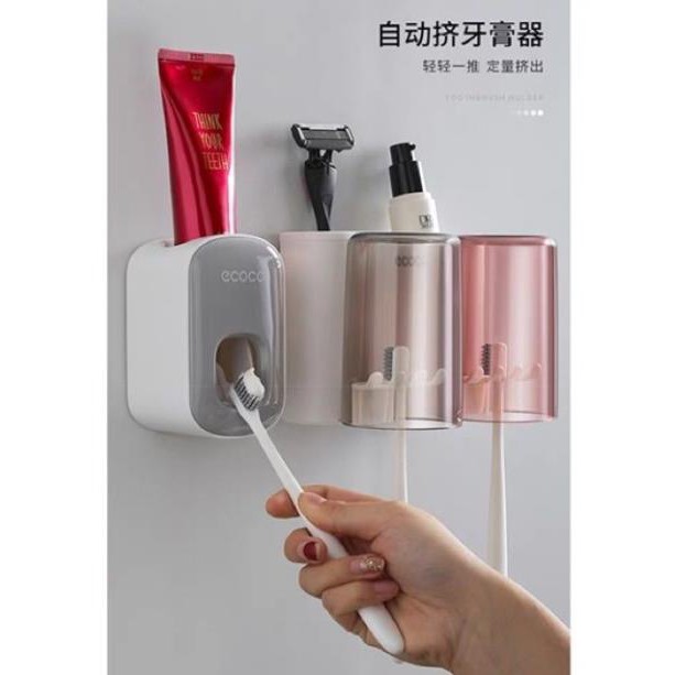 GIỚI THIỆU SP : kệ đựng 2 cốc 3 cốc và 1 nhả kem đánh răng ECOCO Cao cấp. Shop có bán riêng lẻ.Sản phẩm gồm dụng cụ nặn kem đánh răng tự động bên phải của ảnh. Chất liệu PVC bền, đẹp thân thiện với môi trường, an toàn với sức khỏe. - Dễ dàng thay đổi vị trí - Giữ cho bàn chải, cốc, kem đánh răng, sạch sẽ Phần để tuýp kem đánh răng là dạng nặn kem tự động, chỉ cần đưa đầu bàn chải vào nhấn nhấn là kem đánh răng chảy xuống, rất tiện Sử dụng công nghệ hút chân không hiện đại hút siêu dính, không cần khoan vít.