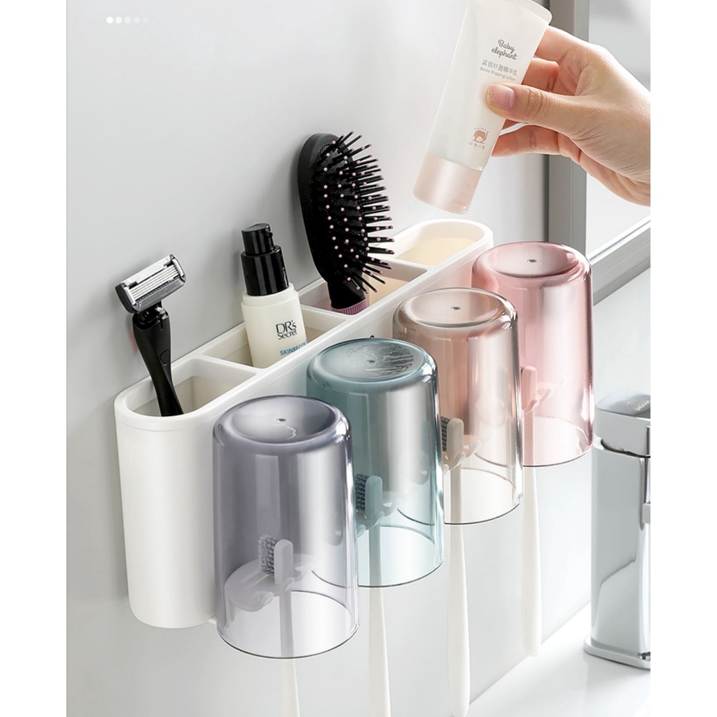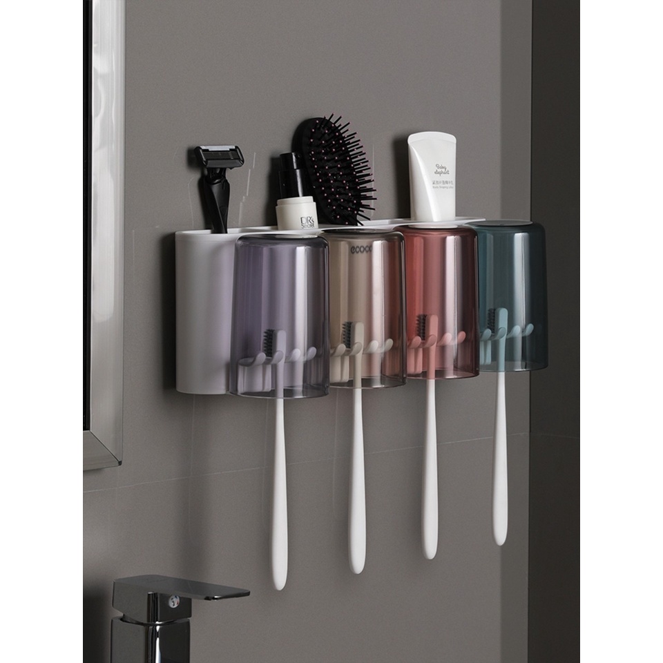 Nhà cửa & Đời sống > Đồ dùng phòng tắm > Kệ đựng bàn chải, kệ nhả kem đánh răng || Kệ cắm bàn chải để đồ nhà tắm kèm 4 cốc thông minh ECOCO không cần khoan tường - E1926Còn hàng