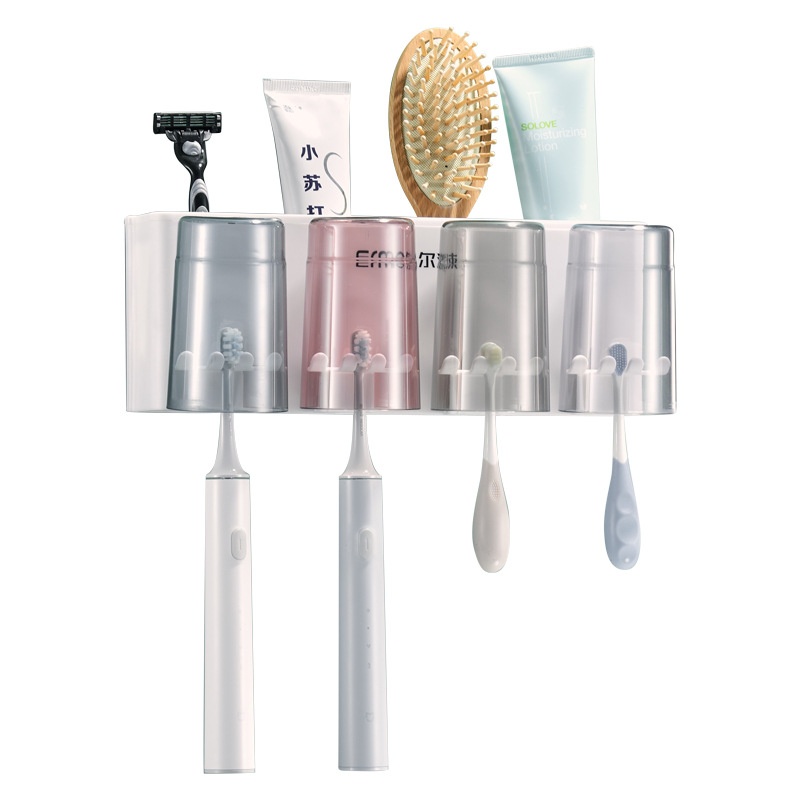 Kệ cắm bàn chải để đồ nhà tắm kèm 4 cốc thông minh ECOCO không cần khoan tường - E1926