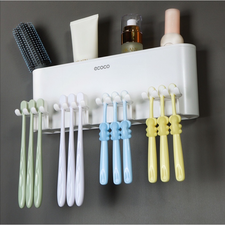 - Bộ sản phẩm kệ để bàn chải đánh răng đa năng kèm 2 cốc, móc treo bàn chải và kệ để mỹ phẩm lặt vặt khác của Ecoco.