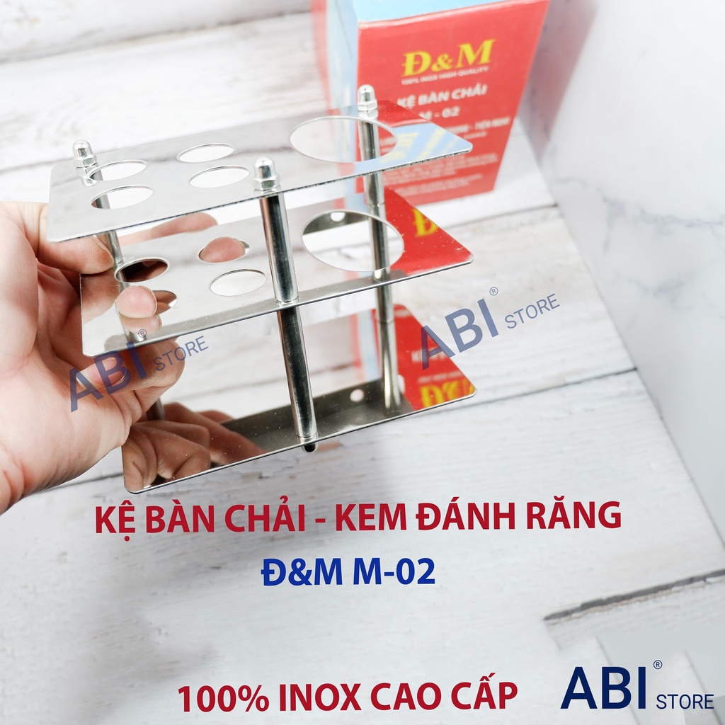 Kệ cắm kem đánh răng, cài bàn chải Đ&M M-02 inox đánh bóng cao cấp kèm ốc vít