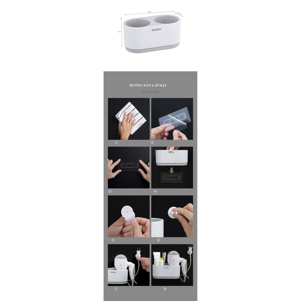 💥Kệ cắm máy sấy, lược, đựng đồ nhà tắm đa năng Ecoco E1811🌱Chất liệu: Nhựa PP và inox