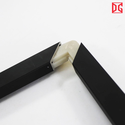 – Kết nối bằng ke góc nhôm trong cánh cứng khá là đơn giản. Luồn ke vào khoang 2 thanh nhôm cần gép rồi bơm keo hoặc bắn vít tự khoan để cố định góc.