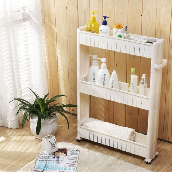 - Kệ cạnh tường đồ đa năng 3 tầng có bánh xe với thiết kế cực kỳ thông minh giúp bạn tận dụng những khe nhỏ nhất trong nhà như giữa 2 khe tủ hoặc bất kỳ góc nhỏ nào để đựng đồ. Sau khi xếp đầy các vật dụng lên kệ bạn chỉ cần đẩy chúng vào khe tường, căn nhà sẽ trở nên gọn gàng, sạch sẽ hơn bao giờ, khi cần lấy đồ