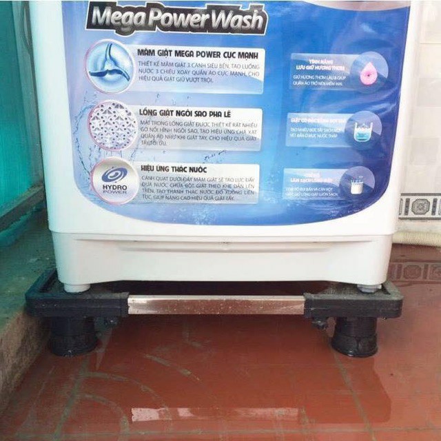 - Dùng để cố định chân máy giặt, tránh máy bị chạy, tránh máy bị rung, lắc và gây tiếng ồn.