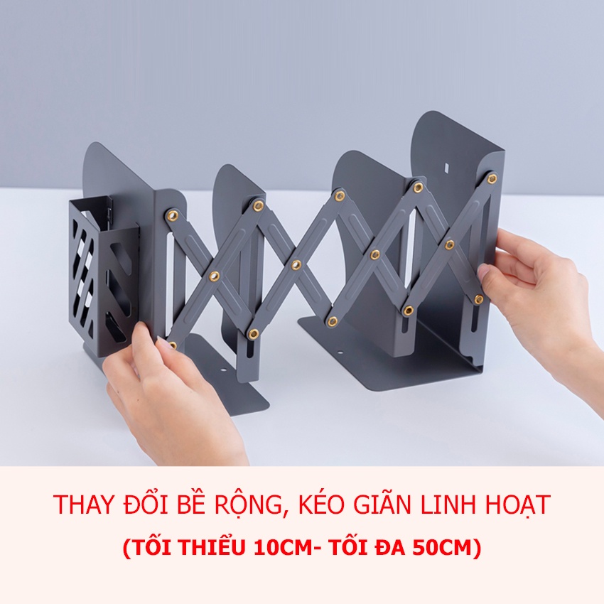 Kệ chặn sách để bàn co giãn giá chặn sách kim loại 3 ngăn kèm hộp bút ZM✪ Giới thiệu sản phẩm :