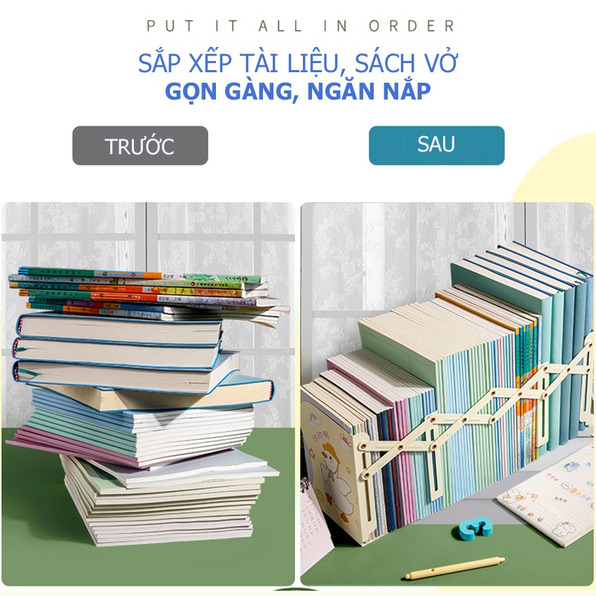 Nhà cửa & Đời sống > Sắp xếp nhà cửa > Kệ sách để bàn || Kệ chặn sách để bàn co giãn giá chặn sách kim loại 3 ngăn BKX BKD111Còn hàng