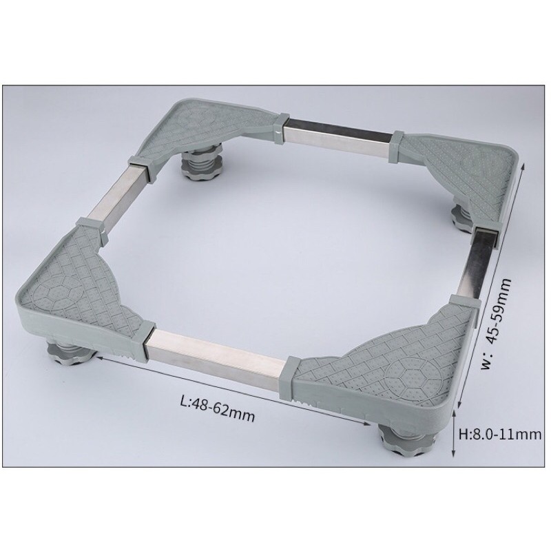 Chân đế có thể thay đổi được cả chiều dài và chiều rộng từ 45-58cm tùy theo kích thước máy giặt, tủ lạnh.