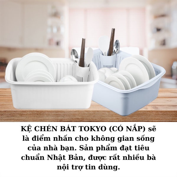 Kệ chén bát nhựa có nắp Tokyo inochi nhà bếp cao cấp an toàn nhựa nguyên sinh kháng khuẩn (có nắp)