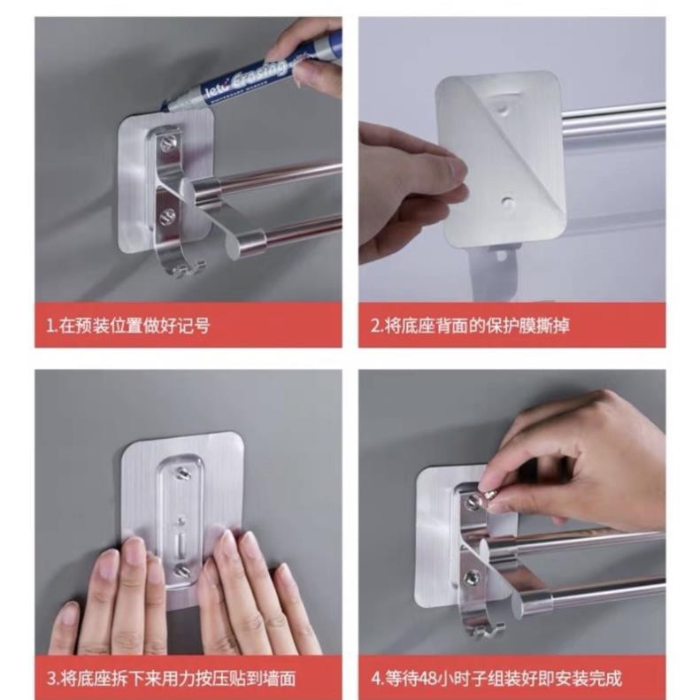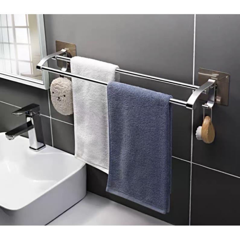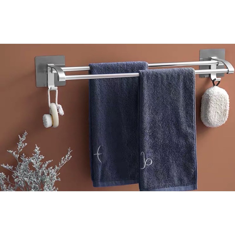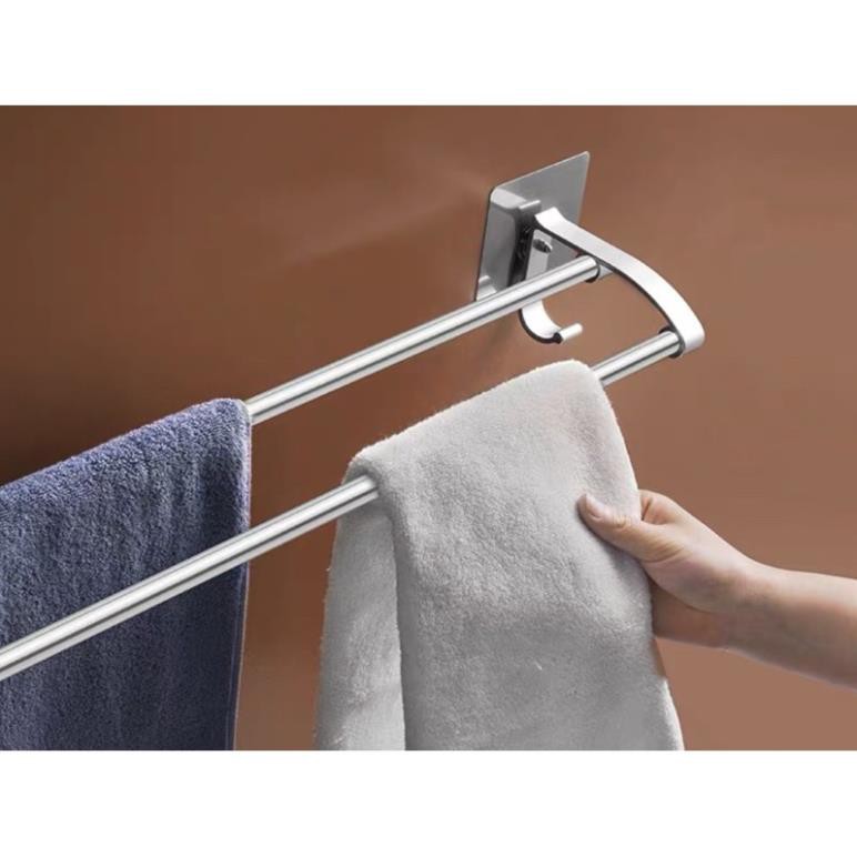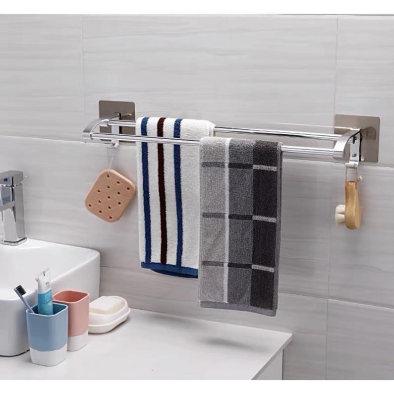 🔥Kệ treo khăn inox 2 thanh dán cường lực mã SQ5219🔥🌱Chất liệu: inox cao cấp SEBS, PC, không gỉ, siêu bền,